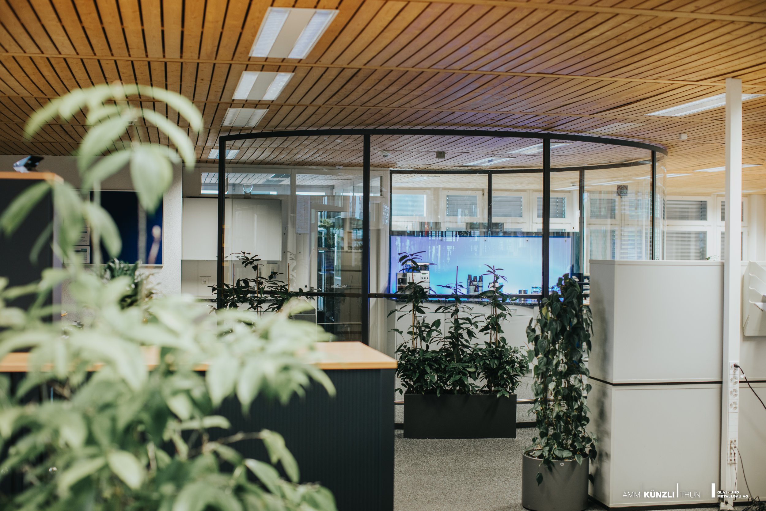 Die von uns entwickelten Ganzglastüren und Ganzglas-Abschlüsse schliessen ab, ohne zu trennen.
