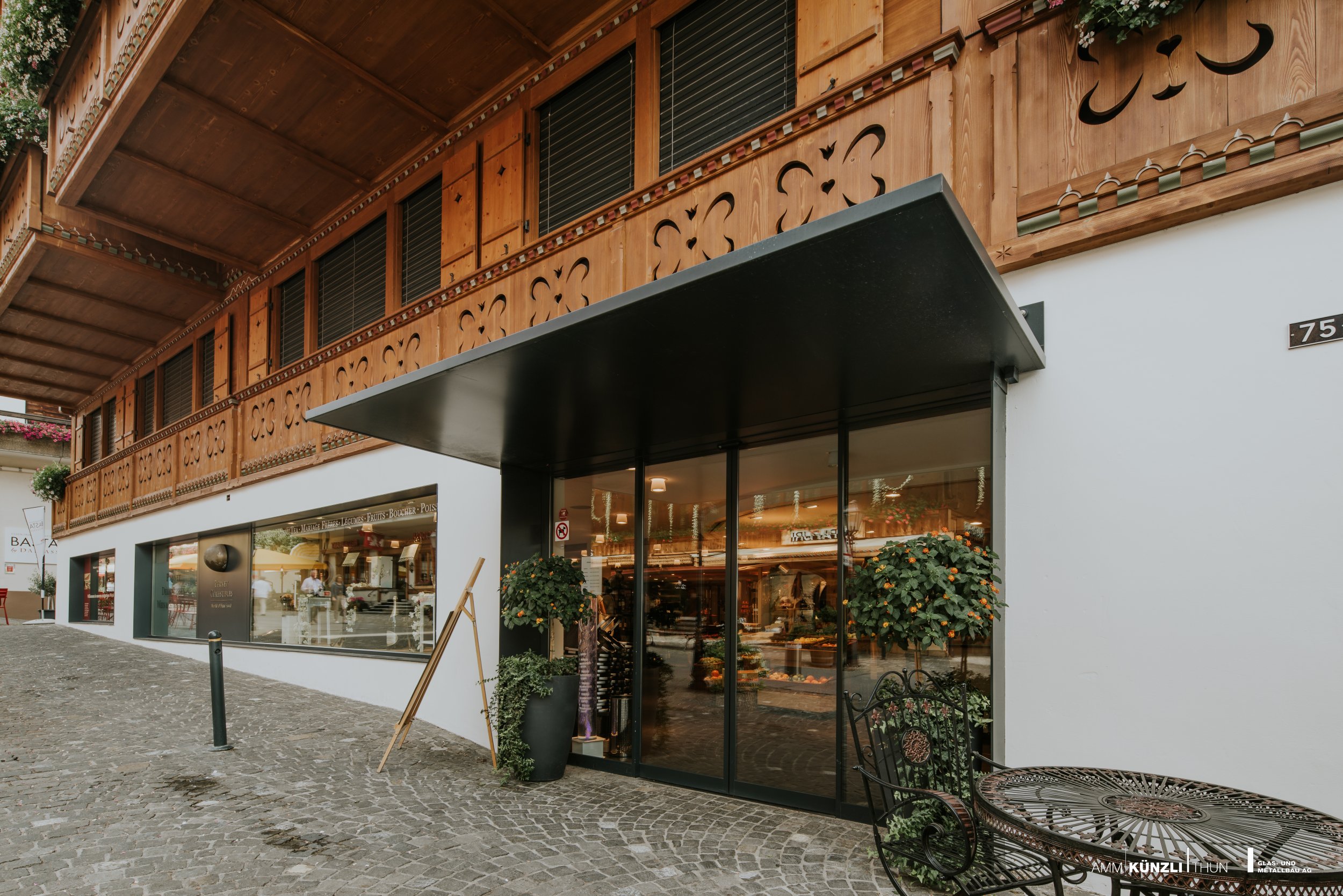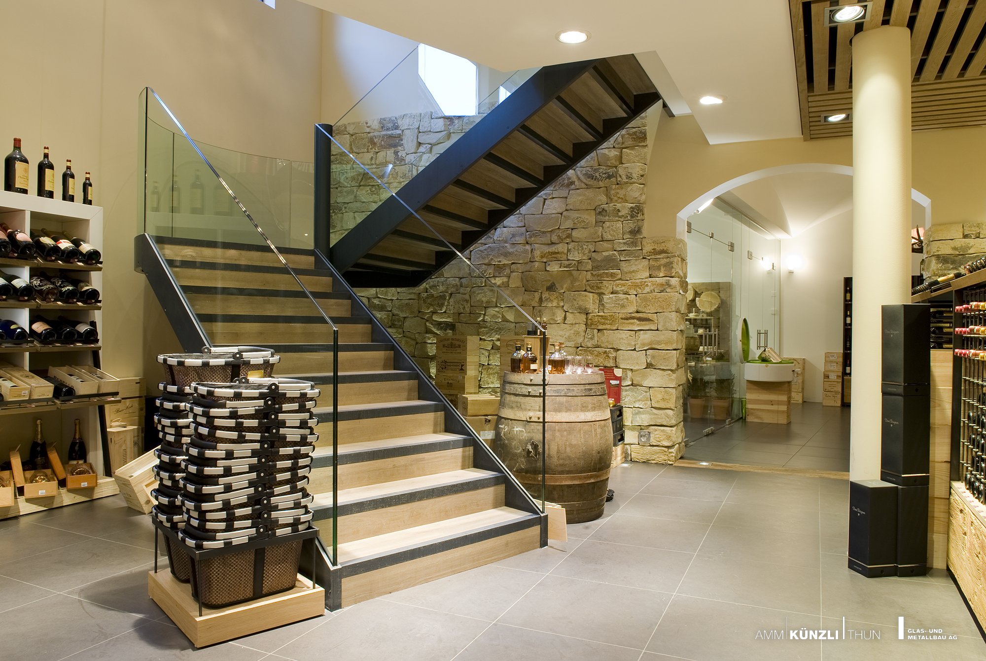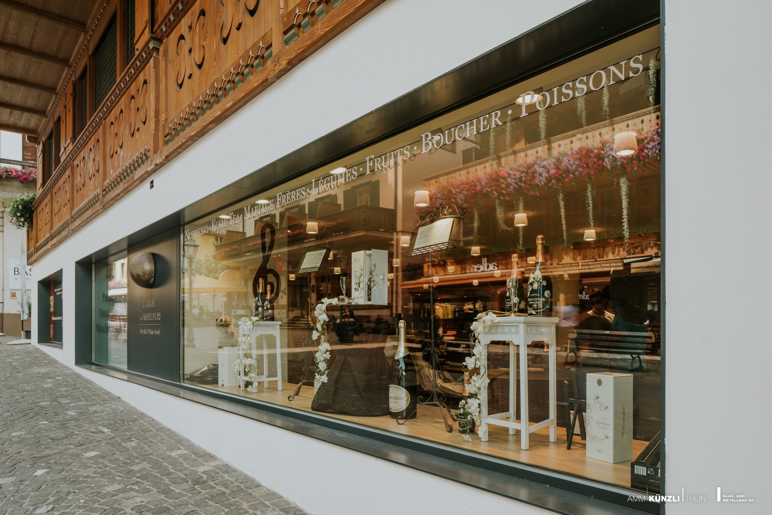 Exklusive, regionale oder internationale Produkte verdienen es schön ausgestellt zu werden. Man spürt beim einkaufen, dass es sich hier um qualitativ hochstehende Lebensmittel handelt. So wie bei unseren Treppen, Glasabschlüssen oder dem imposanten Eingang. Pernet und AMM arbeiten am gleichen Ziel: Nur das Beste für den Kunden.